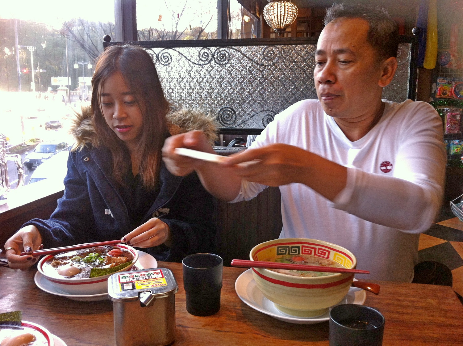 ในปีต่อมา ไม่รู้ว่าเป็นความบังเอิญหรืออะไรก็ตาม เรามาร้านนี้อีกครั้งในช่วงบ่ายๆ คนจึงไม่ค่อยเยอะ ไม่ต้องต่อแถวยาว เดินขึ้นบันไดไปที่ชั้น 2 รอหน้าห้องสักครู่ พนักงานนำเมนูมาให้สั่งราเม็งที่มีหลายเซ็ตให้เลือก สั่งกันตามที่อยากชิม ก่อนเข้าไปนั่งภายในร้าน ครั้นเมื่อถึงคิว เราได้นั่งโต๊ะเดิมของปีก่อน นั่งที่เดิมที่เคยนั่ง มองไปนอกหน้าต่างเห็นวิวสวนป่าศาลเจ้าเมจิ (แอบตื่นเต้น เป็นไปได้อย่างไร แต่ก็ไม่ใช่เรื่องแปลก !)