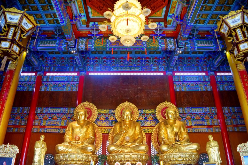 ภายในวิหารเป็นที่ประดิษฐานของเหล่าพระโพธิสัตว์และธรรมบาล รวมถึงรูปปั้นเทพต่างๆ