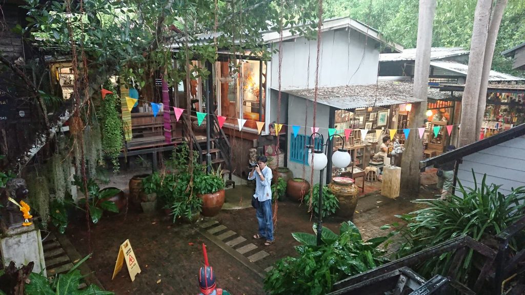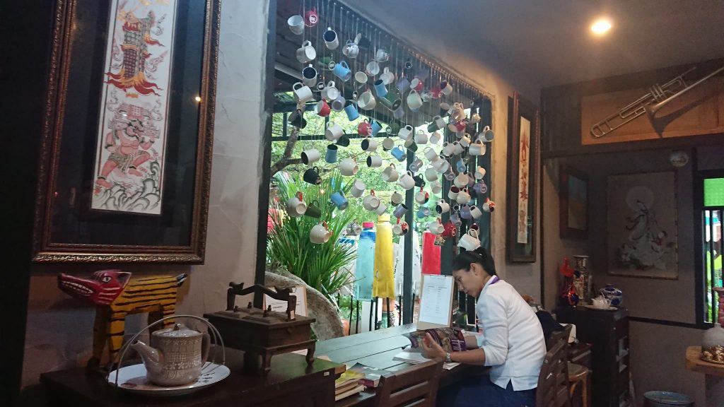 เดินชมศิลปะกันเพลินๆถ้าหิวและเหนื่อย ที่นี่ก็ยังมีร้านกาแฟและร้านอาหารที่ตกแต่งได้อย่างลงตัวและสวยงาม พร้อมกาแฟสดรสชาติเข้มข้น หอมกรุ่น และอาหารหลากหลาย ทั้งอาหารอีสานอย่างส้มตำ ยำ ลาบ น้ำตก หรือเมนูทางฝั่งยุโรป อย่าง “สเต็กหมูสันใน” “สเต็กเนื้อสันใน” หรือพาสต้าและเมนูง่ายๆอย่าง กว๋ยเตี๋ยว ก็มีให้ลิ้มลอง