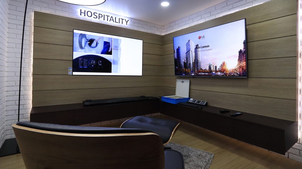 ภายใน LG Information Display Solutions Centerยังจัดแสดงกลุ่มผลิตภัณฑ์ทีวีสำหรับโรงแรมและ ธุรกิจเพื่อการท่องเที่ยวโดยแอลจีเตรียมปฏิวัติวงการทีวีสำหรับโรงแรมด้วยการนำเสนอ LG 4KHotel TV ให้แก่กลุ่มโรงแรมในระดับหรูครอบคลุมตั้งแต่ห้าดาวขึ้นไปพร้อมเสริมความแข็งแกร่งด้วยการร่วมมือกับพันธมิตรทางธุรกิจทั้งระดับโลกและชั้นนำของประเทศนำเสนอโซลูชั่นครบวงจรสำหรับโรงแรมเพื่อมอบประสบการณ์ในการรับชมความบันเทิงที่เหนือกว่า