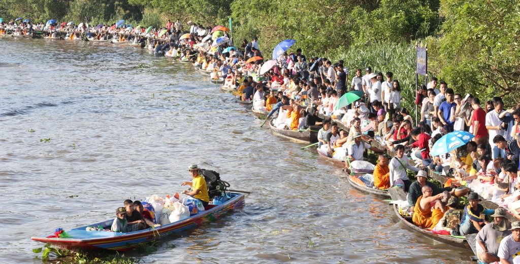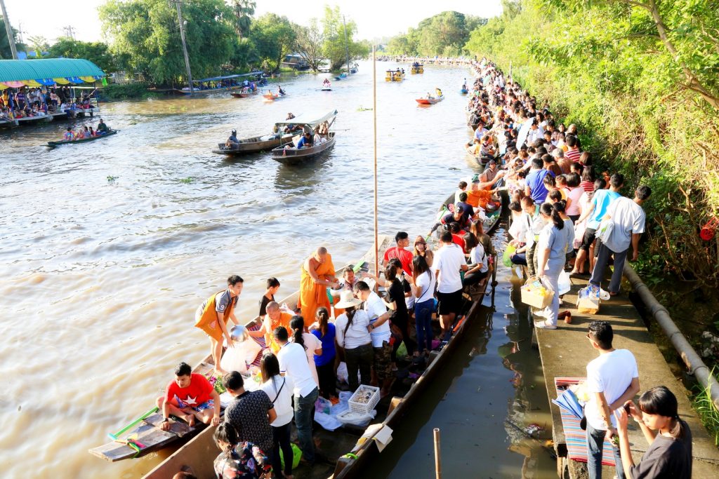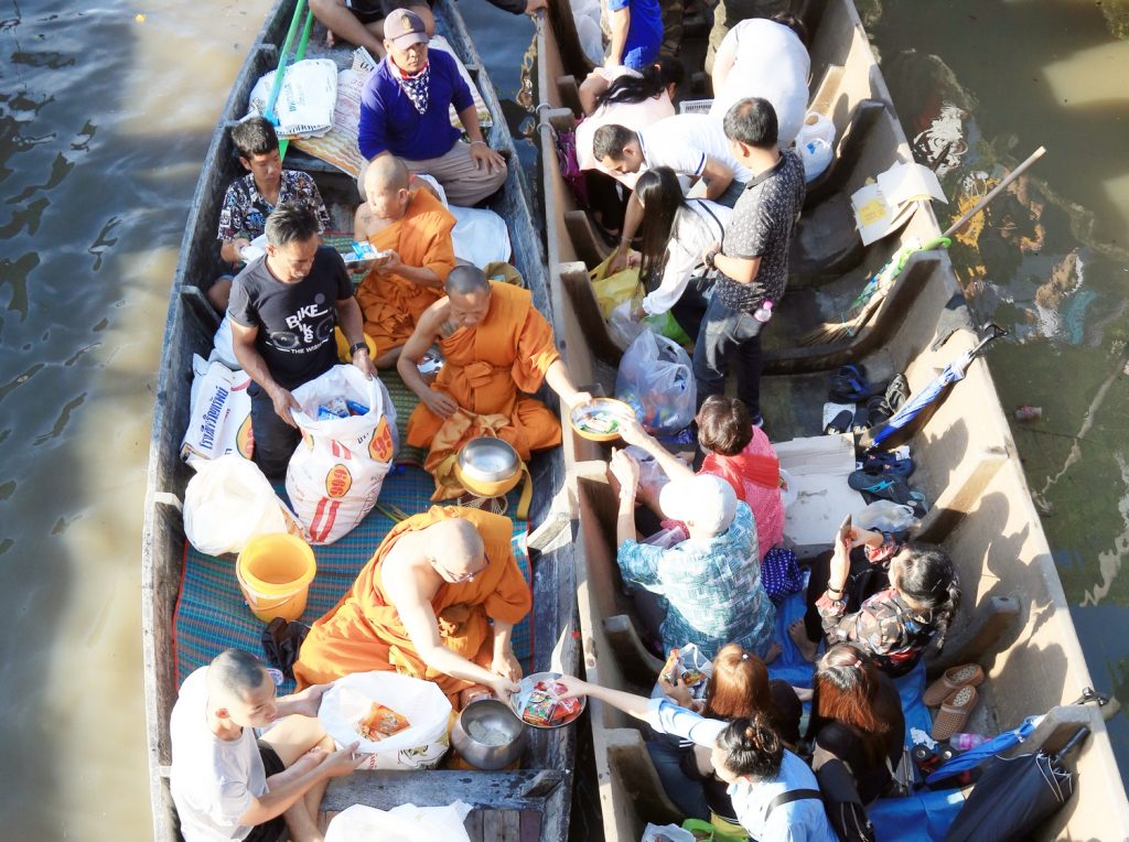 ประเพณีตักบาตรพระร้อยทางเรือ เอกลักษณ์ความเป็นไทย วัดสุทธาโภชน์ ลาดกระบัง