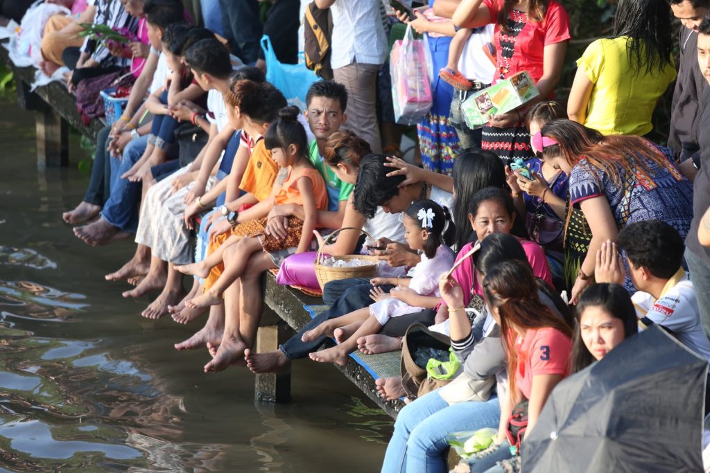พุทธศาสนิกชน บางคนยังคงยึดมั่นในประเพณีที่สืบทอดกันมา โดยจัดเตรียมอาหารแต่งตั้งเช้าตรู่ และแต่งกายในชุดไทย รามัญอย่างสวยงาม โดยมาจับจองที่ริมคลองเพื่อจะได้ถวายอาหารพระทางน้ำ