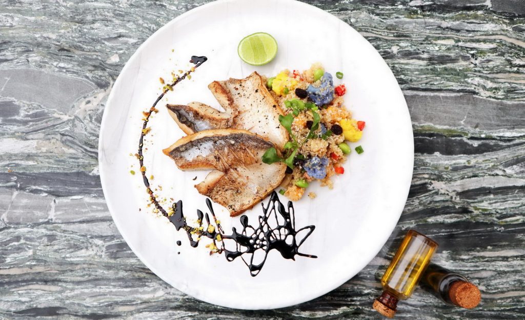 อีกหนึ่งจานอาหารกับรสชาติที่แปลกใหม่ในเมนู เนื้อปลาจาระเม็ดขาวเสิร์ฟเคียงสลัดคินัว พร้อมผักสดรวมหลากสีสัน คลุกเคล้าเดรสซิ่งสูตรพิเศษ มอบความสดชื่นและรสชาติที่แปลกใหม่ไม่ซ้ำใครอย่างแน่นอน