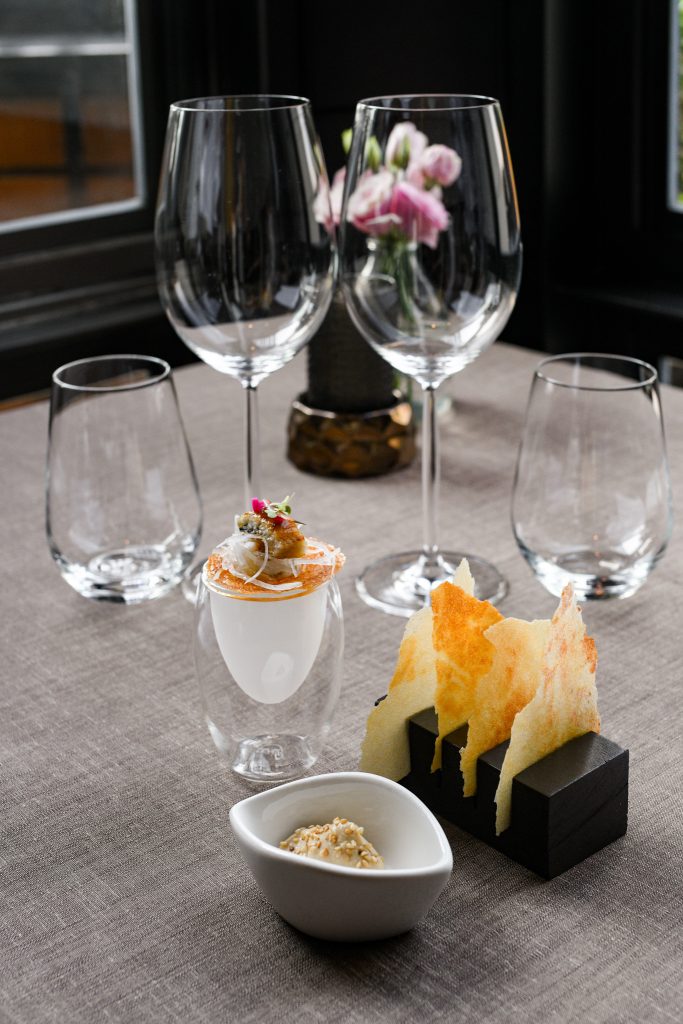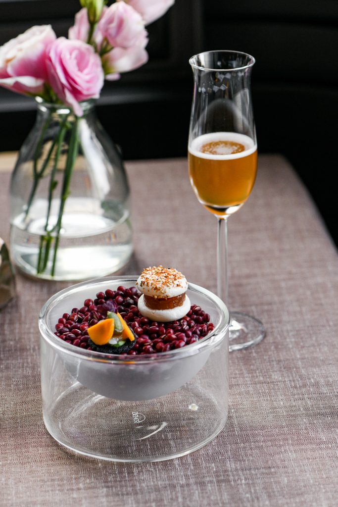 จะเริ่มให้บริการด้วยอาหารคำเล็ก (Amuse Bouche) ที่มีความเป็นเอกลักษณ์ของห้องอาหารฯก่อนจะเริ่มให้บริการอาหารจานแรก โดยอาหารคำเล็กแต่ละชิ้นเป็นตัวแทนธาตุทั้ง 4 (ดิน น้ำ ลม ไฟ)