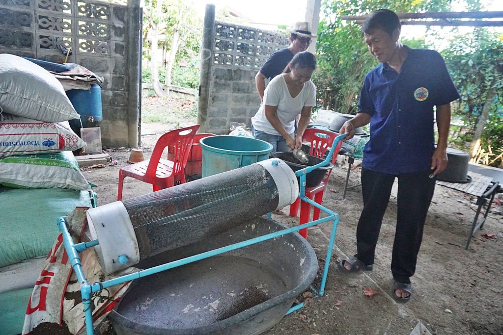 ล่องเรือวนกลับจากศาลเจ้าแม่ทับทิม แวะชิมก๋วยเตี๋ยวหมูตุ๋น ผลไม้จากสวน น้ำเย็นชื่นใจรสมะนาวน้ำผึ้งชัน อิ่มอร่อย คลายร้อน ก่อนเดินผ่อนคลายในสวนเกษตรแบบผสมผสานของสวนเกษตรลัดดาวัลย์ที่มีไม้ผลนานาพันธุ์ เช่น กล้วยน้ำวา กล้วยน้ำไทย ส้ม มะพร้าว ส้มโอ ชมพู่ เป็นต้น