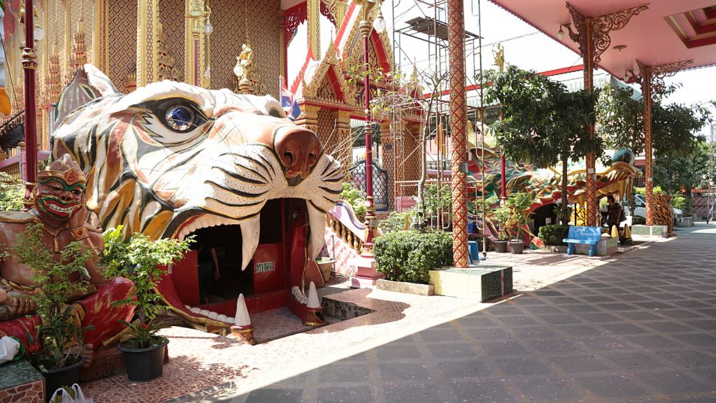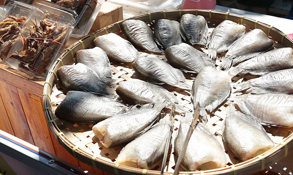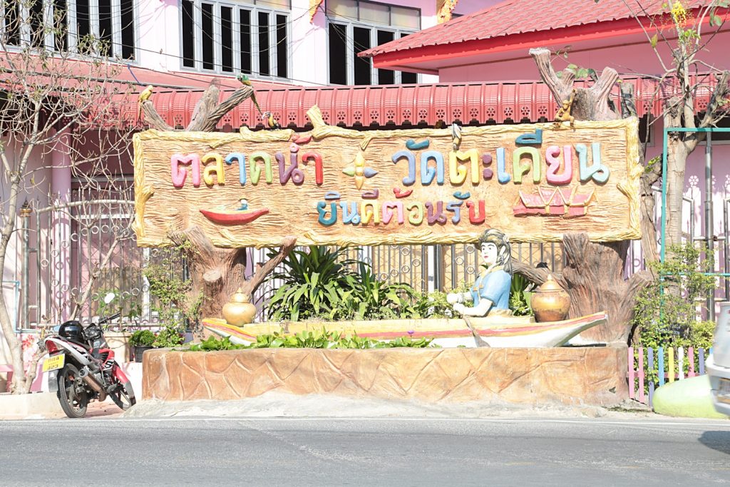 เราเดินทางถึงวัดตะเคียนเป็นจุดหมายแรก วัดนี้กว้างใหญ่ ที่จอดรถมากมาย บรรยากาศยามเช้าคึกคัก มีผัก ผลไม้ อาหารพื้นเมืองจากพ่อค้าแม่ขายในชุมชน ซึ่งเราเพียงมองผ่าน เพราะจะต้องนั่งเรือไปสถานที่สำคัญอันเป็นต้นทางในการล่องเรือ (ของพวกเรา)…ไปค่ะ