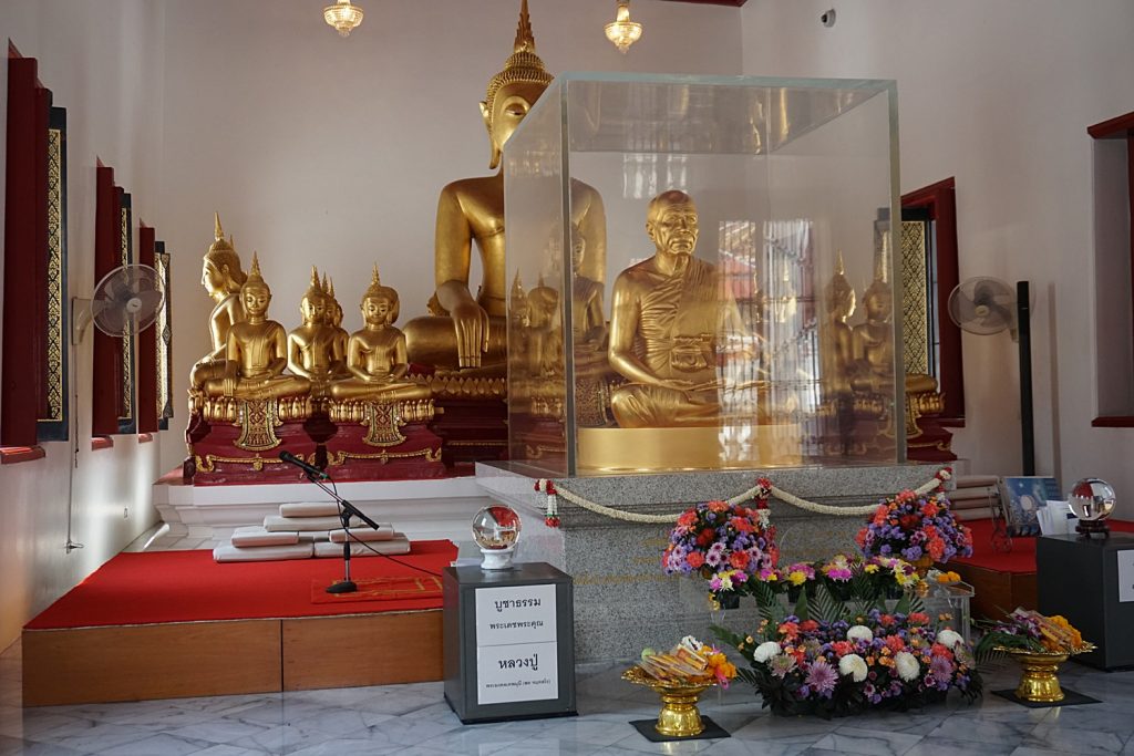วัดนี้มีประวัติมายาวนาน เราเข้าไปสักการะหลวงพ่อกลางสวน ที่ทางวัดได้อัญเชิญมาเมื่อปีพ.ศ. 2507 ไหว้หลวงพ่อบุญธรรมเจ้าอาวาสที่ผู้คนให้ความเลื่อมใสศรัทธา เชื่อว่าศักดิ์สิทธิ์ ชมพระอุโบสถอันงดงาม พระประทานงามสง่า…กราบค่ะ