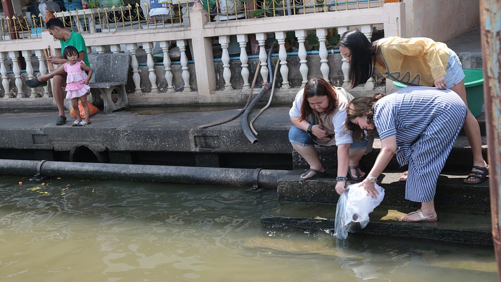 บรรยากาศริมน้ำสดชื่น ลมเย็น เหมาะกับการพักผ่อนในวันหยุด ไม่ว่าจะปล่อยปลา หรือให้อาหารปลา ก็ฟินได้ริมคลอง