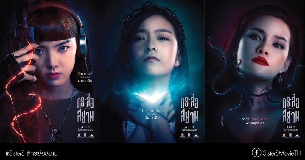 คิดจะพัก-หลังจากภาพยนตร์ แอคชั่น -ระทึกขวัญ อย่าง “SisterS กระสือสยาม” ผลงานการกำกับของ ปรัชญา ปิ่นแก้ว ได้ปล่อยคลิปคาแร็กเตอร์ของ “วีณา” และ “โมรา” ไปแล้ว ก็เกิดกระแสตอบรับจากผู้ชม ซึ่งคาดเดากันไปว่าจะเกิดอะไรขึ้นกับตัวละครเหล่านี้ ล่าสุด สหมงคลฟิล์มฯ ขอปล่อย 3 โปสเตอร์คาแร็กเตอร์ เพื่อถ่ายทอด บุคลิกของตัวละครสำคัญไม่ว่าจะเป็น พี่-น้อง และ กระสือคู่อาฆาตอย่าง “ราตรี ที่พวกเขามีชะตากรรม และความแค้นให้ต้องมาทำลายล้างกันให้สิ้นซาก