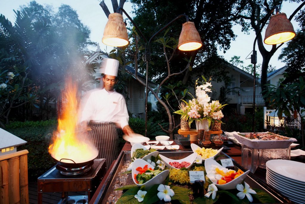 รายการอาหารไทยรสเยี่ยม 5 รายการจากทุกหมวดหมู่ ทั้ง แกงสไตล์ไทยรสเข้มข้น เมนูเนื้อหมูหรือปลารสจัดจ้าน อาหารจานผัดรสกลมกล่อม ยำท้องถิ่นรสดั้งเดิม และที่ขาดไม่ได้ อาหารจานผักเมนูเด่น ที่เชฟทั้งเลือกสรรและรังสรรค์ให้มีครบทุกรสชาติ พร้อมเสิร์ฟคู่ข้าวหอมมะลิร้อนๆอย่างไทย ก่อนปิดท้ายมื้ออาหารอร่อยด้วยผลไม้ไทยหวานฉ่ำประจำฤดูกาล เป็นรายการอร่อยครบรส เต็มอิ่มและโดดเด่นอย่างน่าประหลาดใจ