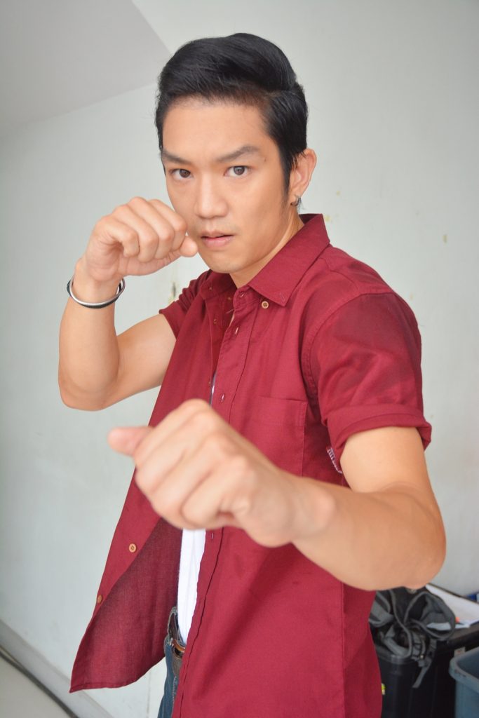 “บทบู๊อีกแล้ว (ยิ้ม) ถามว่าเบื่อไหมไม่หรอก ผมสนุกกับการทำงานอยู่แล้ว แต่อาจจะติดที่คนดูมี ภาพจำเราในลุคแบดบอยเตะต่อย ซึ่งตลอดการทำงานในวงการสำหรับผมเนี่ย ผมได้รับบทให้เล่นแอคชั่น ตลอด แต่เอาจริงๆ เลยนะครับ จากใจเลยคือ จริงๆ ผมชอบเล่นดราม่า เรารู้สึกว่าแอคชั่นมันไม่ยาก สำหรับเราแล้ว ตอนนี้ก็อยากเล่นดราม่าบ้างอะไรบ้าง แต่พอพี่ซ้ง (ธรธร สิริพันธ์วราภรณ์) ซึ่งเป็นผู้กำกับ ที่เราไว้ใจ ตัดหนังออกมาดี ชวนมาเล่นใน “สายบู๊ฯ” ผมก็เลยรับเล่น คาแรคเตอร์ของผมในเรื่อง ได้แรง บันดาลใจมาจากแดง ไบเล่ การแต่งกาย จะออกแนวยุค 2499 แบบ เจมส์ดีน เอลวีส แนวๆ นั้นเลยครับ ซึ่งเรื่องนี้ “แดงไบ” ก็ไม่ใช่ทั้งตัวร้ายและไม่ใช่คนดี เขาเป็นอดีตนักมวยฝีมือดี เป็นตัวละครที่มีความซับซ้อน ของตัวเองอยู่แล้ว มีความคิดเป็นของตัวเอง ไม่ได้เป็นบอดี้การ์ดใคร อารมณ์ร้อน มีความสุดขั้ว ชอบการ เอาชนะ หัวดื้อหน่อยๆ ทำทุกอย่างตามความต้องการของตัวเอง ถ้ามีใครมาขวาง เขาก็พร้อมที่จะบวก เข้าใส่กับทุกคนไม่ว่าจะใหญ่มาจากไหน เป็นตัวละครพร้อมชน ”
