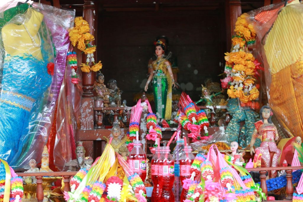 ศาลเจ้าแม่ตะเคียนทอง อยู่ระหว่างเรือโบราณ และตลาดขายของ ซึ่งมองไปโดยรวมจะเห็นชุดไทยและพวงมาลัยเป็นจำนวนมาก ที่ผู้มีจิตศรัทธานำมาถวาย แทนคำขอบคุณที่สำหวังดังที่ขอไว้ (ความเชื่อส่วนบุคคล)