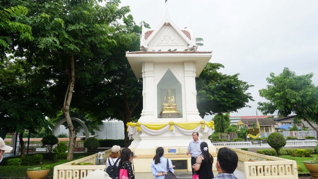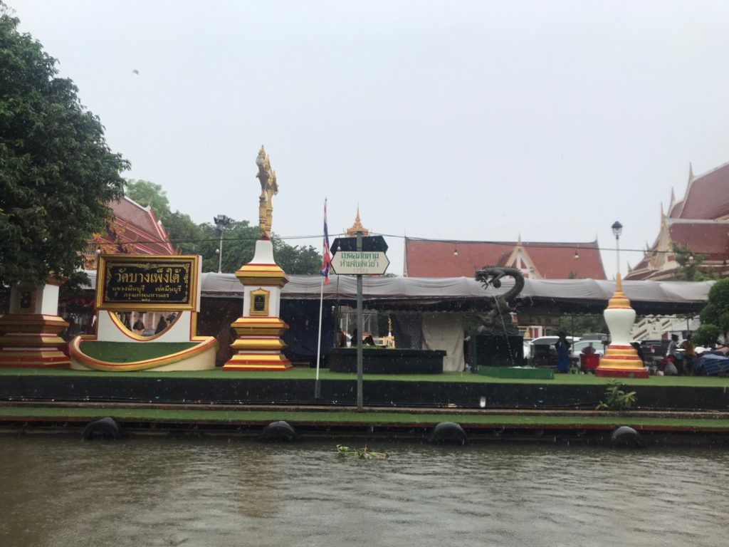 ก่อนล่องเรือชมวิถีริมคลอง มองไปฝั่งตรงข้าม เป็นอีกหนึ่งไฮไลท์ที่ไม่พลาด “วัดบางเพ็งใต้”