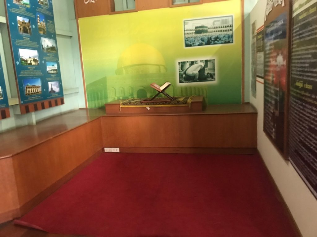 ห้องศาสนาจัดแบ่งเป็นสองส่วน คือ ส่วนแรกจัดแสดงศาสนาพุทธ ประกอบด้วย พระพุทธรังสีสวัสดิ์รังสรรค์ พระพุทธสิหิงส์จําลองชนิดย่อ รูปภาพและข้อมูลวันสําคัญทางพระพุทธศาสนา ส่วนที่ 2 ห้องละหมาดจําลองของศาสนาอิสลาม มีอุปกรณ์การละหมาดให้ได้ชม เช่น พรมที่ชาวมุสลิมใช้นั่งละหมาด พระคัมภีร์ที่วางไว้บนแท่นบูชา