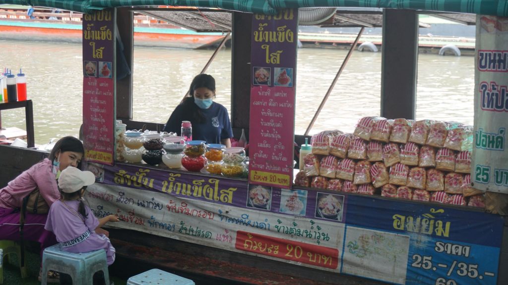 ปิดท้ายการเยี่ยมชมด้วยน้ำดื่มเย็นๆ ขนมไทยแสนอร่อย ก่อนไปจุดหมายสุดท้ายของวันย่านตลาดเก่ามีนบุรี