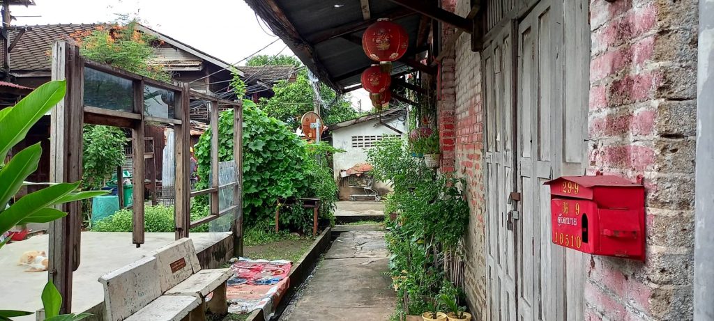 จุดสังเกตุอาคารแต่ละยุค… เข้าทางซอยรามคำแหง 207 เดินเข้าชุมชนให้สังเกตุลานหลบภัยที่อยู่ตรงกลางซึ่งเสมือนเป็นจุดแบ่งยุค โดยด้านซ้ายมือจะเป็นส่วนของอาคารยุคที่ 1 และถัดจากอาคารยุค 1 เข้าไปด้านในจะเป็นอาคารยุคที่ 2 …ส่วนทางด้านขวามือจุดรวมพล จะเป็นอาคารยุคที่ 3 และถ้าเดินไปสุดทาง เลี้ยวซ้ายจะพบกับศาลเจ้าเจียวตี๊เหล่าเอี๊ยะที่ตั้งอยู่ริมคลองแสนแสบ