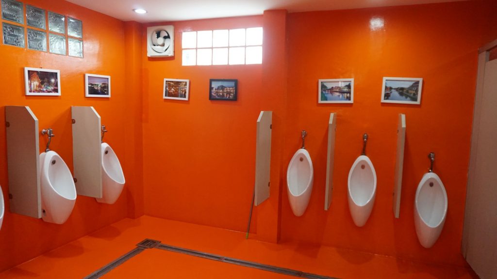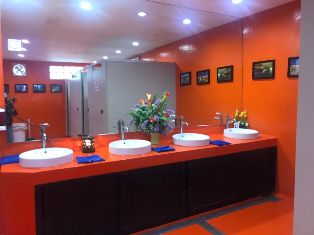 อีกหนึ่งไฮไลท์ของที่นี่ คือ ห้องน้ำติดแอร์ ภายในสีสันสดใส ใหม่ สะอาด อบอวลไปด้วยกลิ่นสมุนไพรหอม (เก็บบริการ 5 บาท)