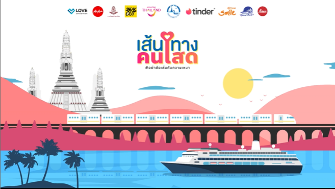 “เส้นทางคนโสด Single Journey” #อย่าล้อเล่นกับความเหงา ส่งเสริมการท่องเที่ยวในประเทศสไตล์คนโสด คนเดียวก็เที่ยวได้ ด้วยความหลากหลายสไตล์การท่องเที่ยว โสดซีซั่นทั่วประเทศ 9 เส้นทาง ได้แก่ แม่ฮ่องสอน เชียงใหม่ เชียงราย ลพบุรี-สระบุรี อุดรธานี-เลย ชุมพร-สุราษฎร์ธานี ภูเก็ต พัทยา พระนครศรีอยุธยา และกรุงเทพมหานคร มุ่งเน้นการพบปะมิตรภาพใหม่ๆ และค้นพบประสบการณ์ที่ดีจากการท่องเที่ยวไปพร้อมๆกันซึ่ง Tinder เป็นแอปพลิเคชันหาเพื่อนให้ทุกคนได้หาเพื่อนใหม่ เพื่อทำกิจกรรมที่มีความชอบที่เหมือนกัน