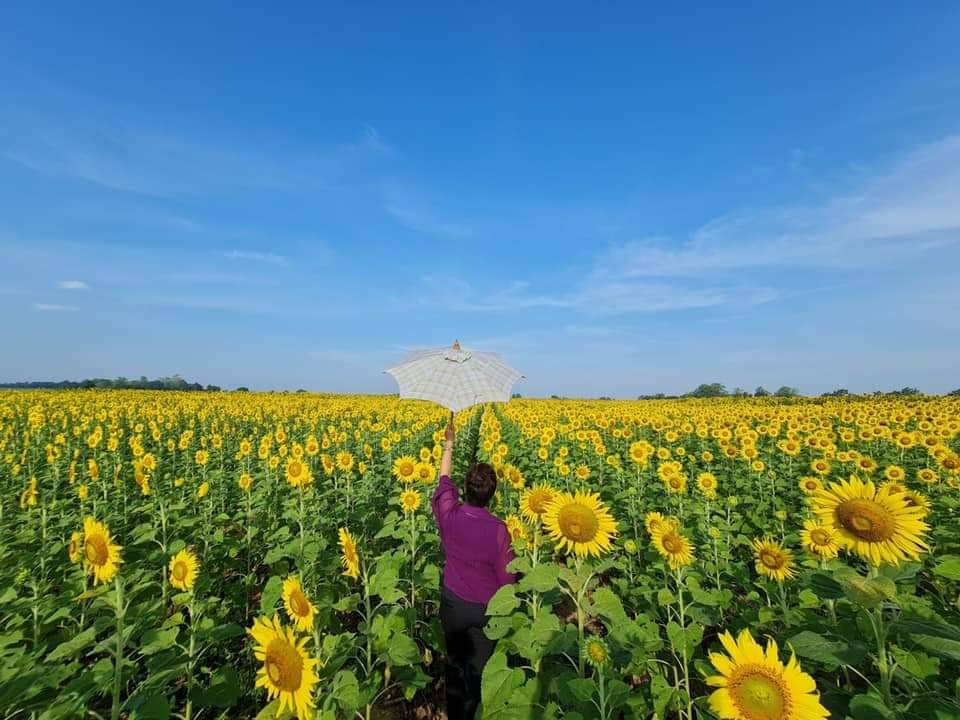 บานแล้ว ไปเที่ยวกันเถอะ ทุ่งทานตะวันนับพันไร่ ที่ หนองม่วง ลพบุรี