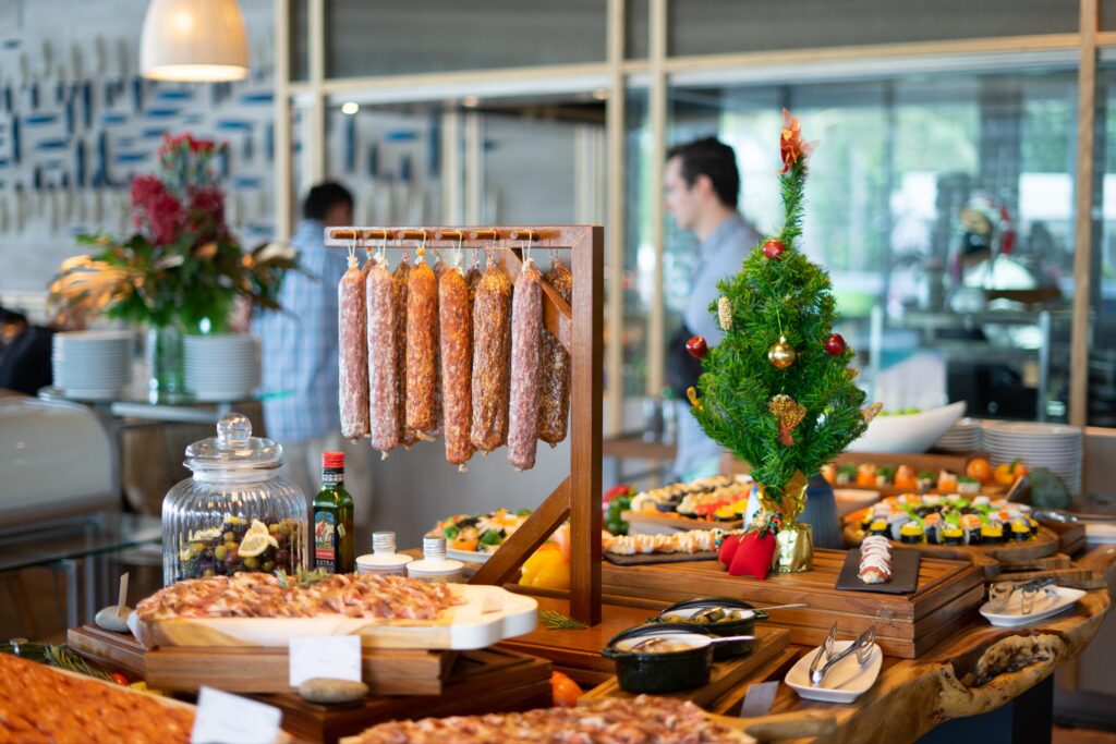ส่วนในวันคริสต์มาส (25 ธันวาคม 2564) เชฟ อาซิซส์ กานดาร์ จะจัดบุฟเฟ่ต์มื้อสายเป็นพิเศษเพื่อให้บริการอาหารแสนอร่อยหลากหลายรายการเคล้าเสียงเพลงบรรเลงขับกล่อม โดยมีอาหารแนะนำที่ทุก ๆ คนติดใจจากมุมอาหารทะเลประกอบไปด้วย ล๊อปสเตอร์ หอยนางรมนำเข้าจากประเทศฝรั่งเศส ปูม้าสีน้ำเงินและกุ้งลายเสือสดใหม่ ส่วนมุมอาหารยุโรปให้บริการเนื้ออบประเภทต่าง ๆ อาทิ ขาแฮมอบน้ำผึ้ง ไก่งวงอบพร้อมเครื่องเคียง สเต็กเนื้อริบอายจากประเทศออสเตรเลีย เนื้อวัวคุณภาพสูงที่เลี้ยงด้วยหญ้าที่คัดสรรมาอย่างดี พอร์เชตต้าหรือหมูย่างอิตาเลียน และขาแกะออสเตรเลียอบกระเทียมและโรสแมรี นอกจากนี้ยังมีมุมอาหารญี่ปุ่นและมุมอาหารสเปน รวมถึงหมูแฮมนำเข้าและชีสนานาชนิด ขนมหวานประจำเทศกาลที่ขาดไม่ได้ ได้แก่เค้กขอนไม้คริสต์มาส ขนมปังปาเน็ตโตเน พุดดิ้งคริสต์มาสและครีมบรั่นดี ครอก็องบุช และอีกมากมาย พบกับคุณลุงซานต้าคลอสจะมามอบของขวัญให้กับเด็กๆ บุฟเฟ่ต์มื้อสายวันคริสต์มาสให้บริการที่ห้องอาหาร เดอะ บรีซ่า บีช เรสเตอรอง แอนด์ บาร์ (The Breeza Beach Restaurant & Bar) ตั้งแต่เวลา 12.00 น. ถึง 16.00 น. ราคาท่านละ 2,400++ บาท สำหรับเด็กอายุระหว่าง 5 – 12 ปี ราคาท่านละ 1,200++ บาท