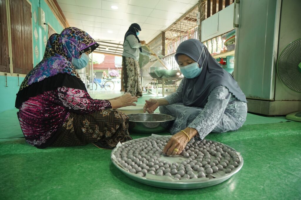 “ยายทำขนมมาตั้งแต่อายุประมาณ 14 – 15 และยังอยู่โรงเรียน กลับมาจากโรงเรียนก็มาช่วยแม่ทำ ก็ทำมาประมาณ 50 กว่าปี เมื่อก่อนก็ขายตามคลอง เข้าบ้านโน้น เข้าบ้านนี้ แต่พอหน้าแล้งก็ทำขนมไปส่งตามร้านพี่น้องที่ขายของอยู่ เราไม่ได้ทำเยอะ แต่ตอนนี้จะเยอะมาก ถามว่ายายทำอะไรเก่ง ก็เก่งไปหมดทุกขนมเลยดีกว่า เพราะยายก็ทำได้หมดทุกอย่าง ก็ไม่รู้จะเอาขนมอะไรชนะ เอาว่าถ้าลูกค้ากินติดใจ ถูกใจ ก็ขอให้ลูกค้าได้กินกันไปเรื่อยๆ แต่ตอนนี้ยายก็แก่แล้ว อยากจะถ่ายทอดอาชีพให้หลานๆ เหลนๆ เขาไป แต่ว่าการทำขนมของยายก็ต้องให้ได้รสชาติของยายที่ทำมา เพื่อจะต่อยอดให้ขายดิบขายดี ลูกค้ากินแล้วเขาจะได้ติดใจ ยายก็จะไปไม่ค่อยไหว แต่พวกหลานๆ ก็บอกว่ายายสู้ๆ เราก็สู้แต่เราก็ยังดูแลอยู่ อย่าทำแบบว่านึกจะทำก็ทำเป็นขนมน่ะมันไม่ได้ มันต้องได้รสชาติของมัน ให้รสชาติกลมกล่อม ให้อร่อย ลูกค้าถึงจะติดใจ เมื่อตัวเรากินเองว่าอร่อย คนอื่นก็อร่อย แต่ถ้าเรากินไม่อร่อย คนอื่นก็บอกว่าไม่อร่อยเหมือนกัน”
