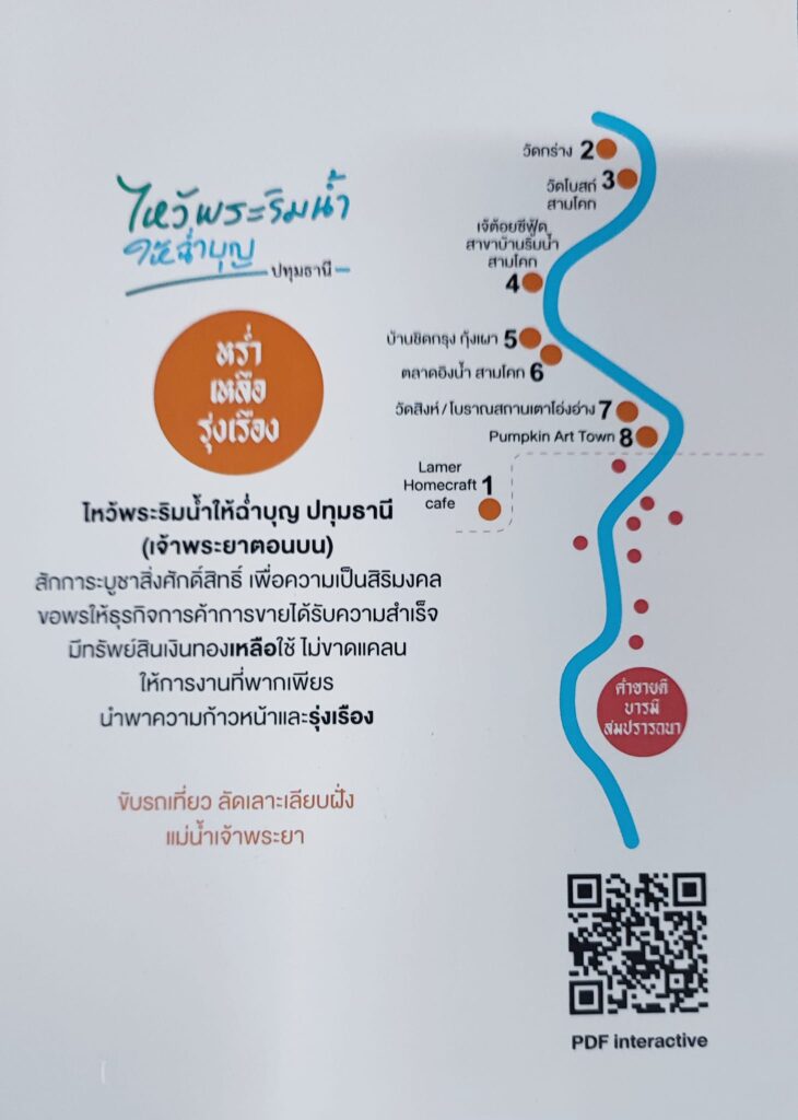 - เส้นทาง “หร่ำ เหลือ รุ่งเรือง” ชวนไปรู้จักกับวัดวาอาราม ริมแม่น้ำ เจ้าพระยาตอนบน ของปทุมธานี ได้แก่