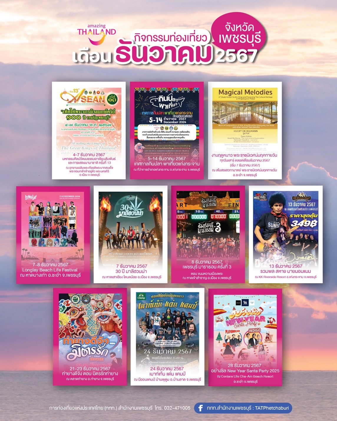 🌸ปฏิทินกิจกรรมท่องเที่ยวจังหวัดเพชรบุรี ประจำเดือน ธันวาคม 2567