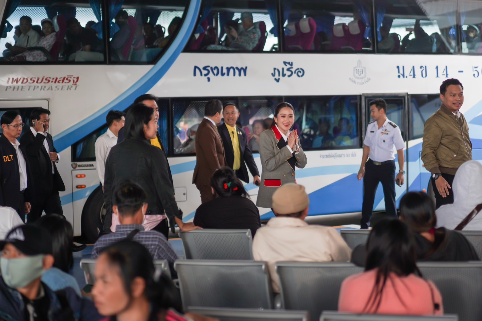 นายกรัฐมนตรีตรวจสอบความพร้อมและการทำงานของพนักงาน ณ จุดซื้อตั๋วรถ และตรวจสอบที่พักนั่งรอผู้โดยสาร รวมถึงชานชาลารถบัส เพื่อดูความพร้อมของท่าเทียบรถ ไม่ให้เกิดความแออัด สามารถรองรับผู้โดยสาร