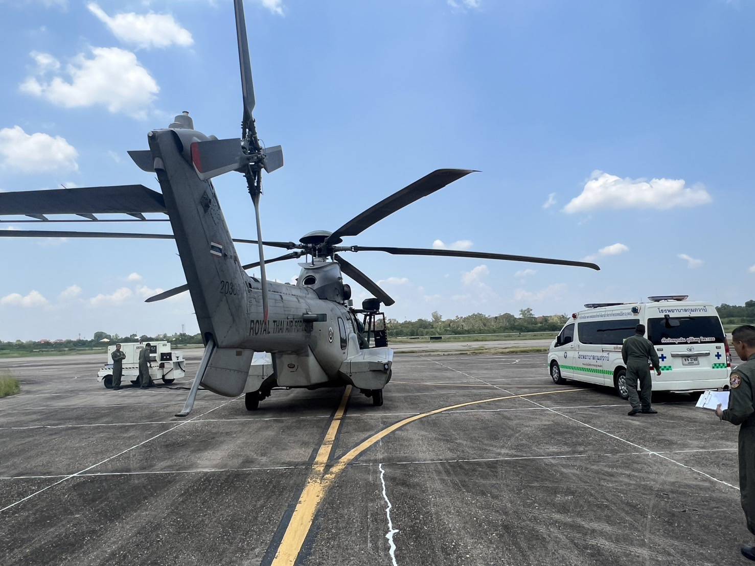 นพ.ณัฐพงศ์ วงศ์วิวัฒน์ ผู้ตรวจราชการกระทรวงสาธารณสุข เขตสุขภาพที่ 8 เปิดเผยว่า หน่วยปฏิบัติการอำนวยการ โรงพยาบาลอุดรธานี ได้ประสานสถาบันการแพทย์ฉุกเฉินแห่งชาติ ขอรับการสนับสนุนอากาศยาน เพื่อรับผู้ป่วยชาย สัญชาติไทย อายุ 78 ปี มีอาการแขนขาซ้ายอ่อนแรง ปากเบี้ยว พูดไม่ชัด วินิจฉัยเป็น โรคหลอดเลือดสมองตีบ (Stroke : large vessel occlusion ) ซึ่งเกินศักยภาพการรักษาของโรงพยาบาลบึงกาฬ และหากไม่ได้รับการรักษาทันเวลา อาจเสียชีวิตได้ โดย น.อ.นทัย เมืองมณี ผู้บังคับการกองบิน 23 จังหวัดอุดรธานี ได้อนุมัติสนับสนุนอากาศยานเฮลิคอปเตอร์ และทีมการแพทย์ฉุกเฉินช่วยลำเลียงผู้ป่วยจนสำเร็จ ผู้ป่วยได้รับการรักษาด้วยวิธีสวนลากลิ่มเลือดทางสายสวน (mechanical thrombectomy) เพื่อเปิดหลอดเลือดให้เลือดสามารถไปเลี้ยงสมองได้ขณะนี้ผู้ป่วยอาการปลอดภัย ได้รับการดูแลในหอผู้ป่วยวิกฤติ โรงพยาบาลอุดรธานี
