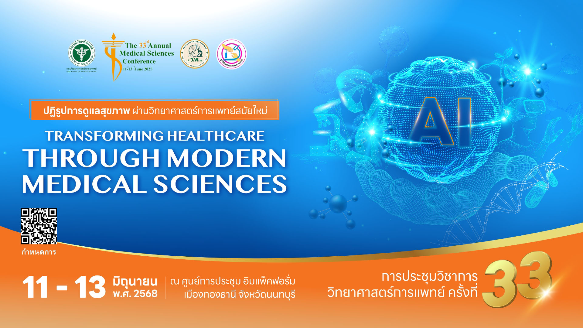 News & Events กรมวิทยาศาสตร์การแพทย์ ขอเชิญผู้สนใจร่วมการประชุมวิชาการวิทยาศาสตร์การแพทย์ ครั้งที่ 33 11-13 มิถุนายน 2568 ณ ศูนย์การประชุมอิมแพ็ค ฟอรั่ม เมืองทองธานี
