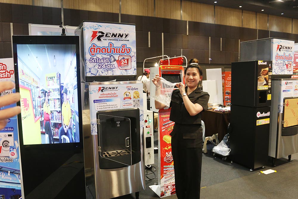 แฟรนไชส์หมวดธุรกิจเครื่องหยอดเหรียญ อาทิ เครื่องกรองน้ำเซฟ Safe, COFFEE STARTUP ตู้กาแฟหยอดเหรียญอัตโนมัติ, เรนนี่ ตู้กดน้ำแข็งอัตโนมัติ เครื่องตู้ต่อยมวย