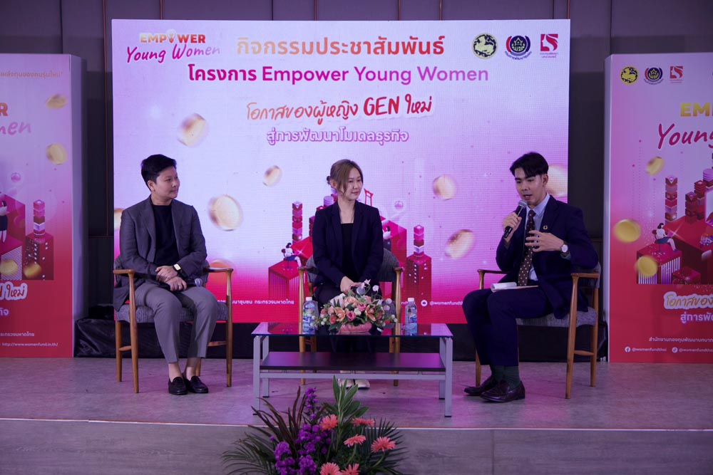 นางสาวสุขนันทิพย์ ศรีสมวงษ์ กล่าวว่า โครงการ “Empower Young Women โอกาสของผู้หญิง Gen ใหม่ สู่การพัฒนาโมเดลธุรกิจ” เป็นภารกิจสำคัญของกองทุนพัฒนาบทบาทสตรี ซึ่งมีบทบาทในการเสริมสร้างศักยภาพสตรีทุกช่วงวัยให้สามารถพึ่งพาตนเอง มีคุณภาพชีวิตที่ดี และมีส่วนสำคัญต่อการพัฒนาประเทศทั้งด้านเศรษฐกิจ สังคม และความเข้มแข็งของชุมชนฐานรากสู่การพัฒนาอย่างยั่งยืน ภายใต้วิสัยทัศน์ “เป็นแหล่งทุนสำคัญในการพัฒนาคุณภาพชีวิตและเศรษฐกิจในชุมชนให้มีความเข้มแข็งอย่างยั่งยืน”