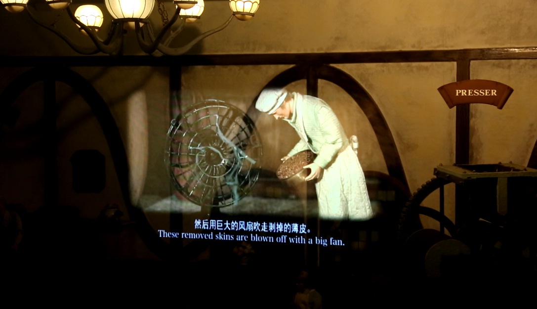 เดินต่อไปในส่วนของพิพิธภัณฑ์ ก็พบกับส่วนที่นำเสนอกรรมวิธีการผลิตช็อกโกแลต ตั้งแต่ต้นจนจบ… เดินต่อไปเรื่อยๆ ผ่านโถงทางเดินที่มีคำอธิบายในเรื่องของวัตถุดิบที่นำมาทำไส้ช็อกโกแลต