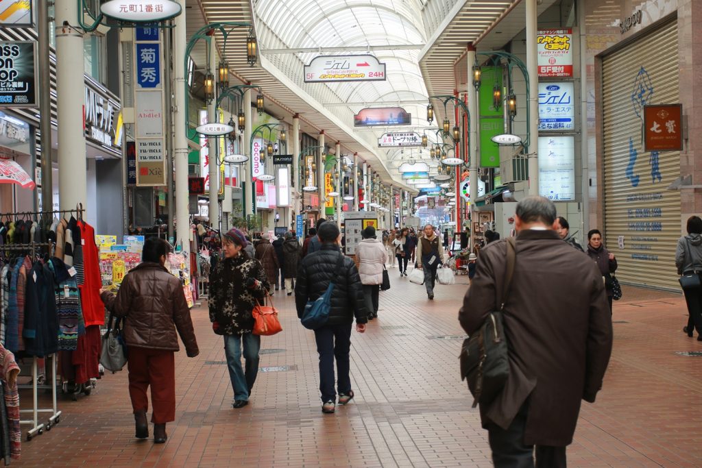 ถนนช้อปปิ้ง โกเบ โมโตมาชิ (Kobe Motomachi Shopping Street) เป็นถนน(ซอย)ที่ทอดยาวสุดสายตา กว่า 1 กิโลเมตร สองข้างทางเป็นร้านค้าตั้งเรียงรายขายของตลอดแนว (เราเดินเฉพาะส่วนที่ผ่านไปไชน่าทาวน์) เป็นถนนสายช้อปปิ้งที่ขนานไปกับเส้นทางรถไฟ…วันธรรมดา คนน้อย