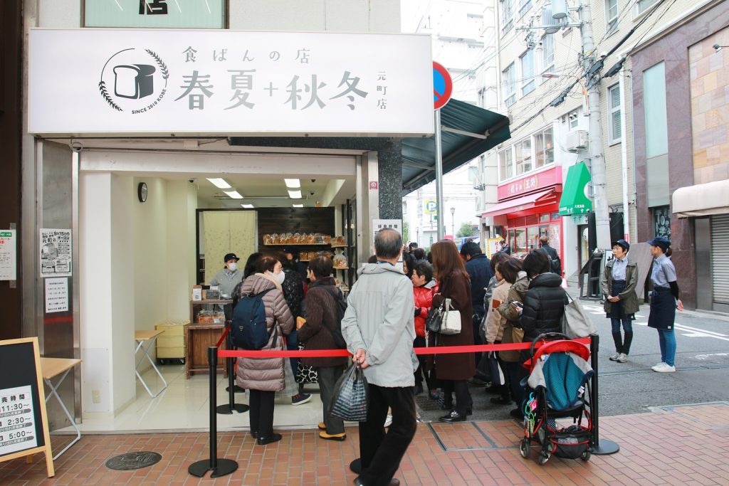 ขนมปังน่าชิม… 食パンの店 春夏+秋冬 元町店 ร้านนี้ตั้งอยู่บนถนนช้อปปิ้ง(ฝั่งซ้าย) ตรงข้ามกับทางเข้า โกเบไชน่าทาวน์ ขนมปังของเขา อบใหม่ ขายเป็นเวลา (11: 30, 14:30, 17: 00) คิวยาวจัง ขอผ่านไปก่อน …กลับมาอีกครั้งคิวที่ยาวนั้น ไม่มีแล้วค่ะ เดินเข้าไปซื้อ แต่ไม่เหลือขนมที่เราอยากลองแล้วสินะ …เอาอะไรก็ได้ ขอซื้อ 2 อัน รูปร่างหน้าตาชวนให้นึกถึงขนมปังลูกเกดบ้านเราเลยค่ะ แต่ของเขาเป็นถั่วแดง แป้งนุ่ม หอม อร่อยไปอีกแบบ …คิวยาว ต้องอร่อย ?