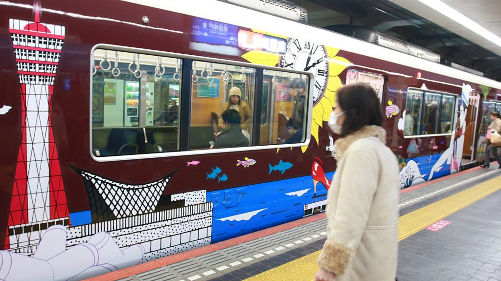 ระหว่างยืนรอรถไฟ เพื่อไปลงสถานีโกเบ บังเอิญ รถไฟขบวนนี้ผ่านมาเสียก่อน จึงขอปิดท้ายเรื่องเล่านี้ด้วยสีสันรถไฟขบวนนี้ …น่านั่งจังเลย !