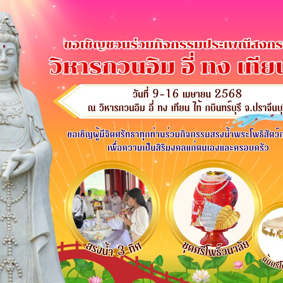 News & Events สงกรานต์นี้ วิหารกวนอิม “อี่ ทง เทียน ไท้” กบินทร์บุรีชวนทุกครอบครัวสักการะขอพรพระโพธิสัตว์กวนอิม