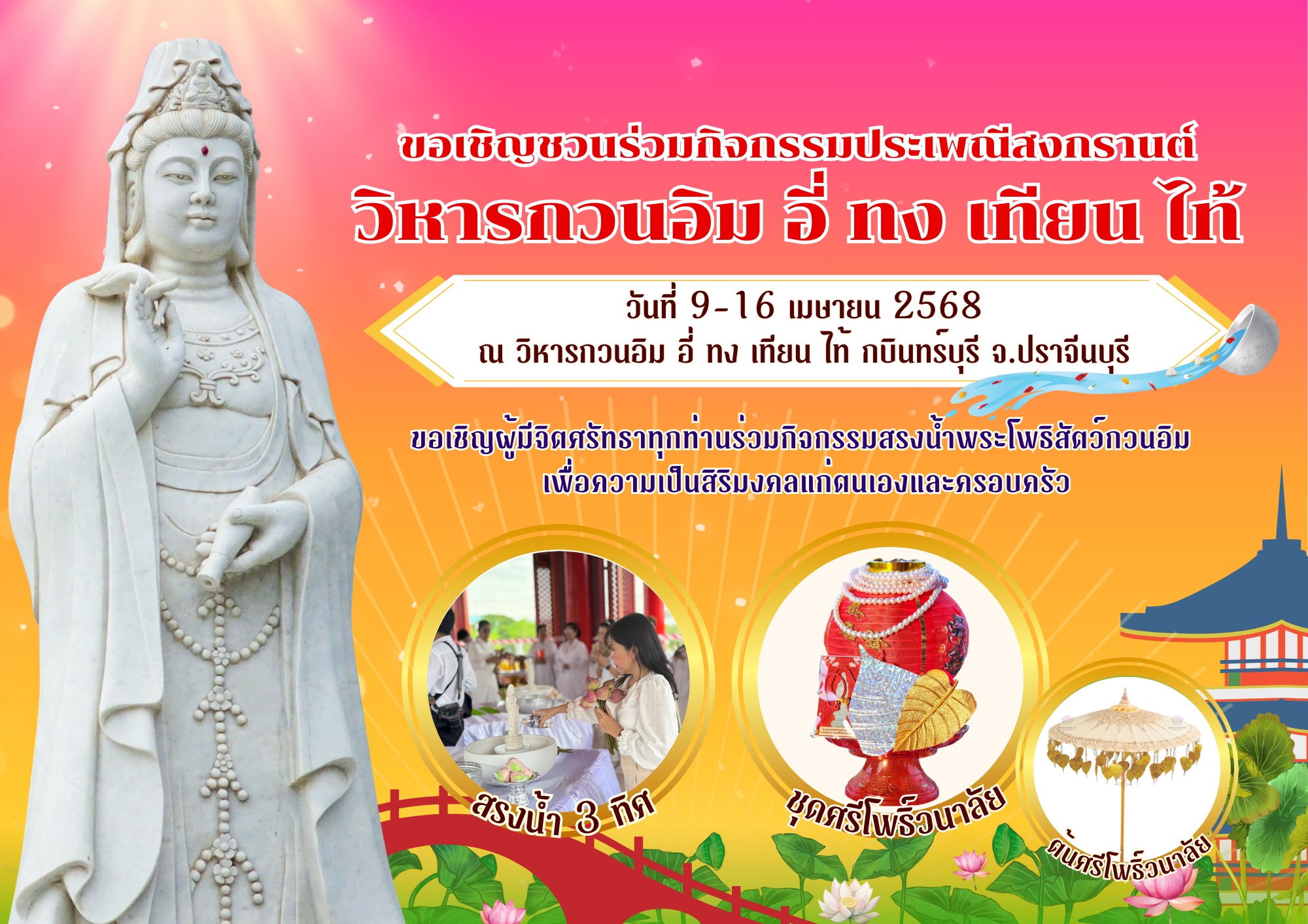 News & Events สงกรานต์นี้ วิหารกวนอิม “อี่ ทง เทียน ไท้” กบินทร์บุรีชวนทุกครอบครัวสักการะขอพรพระโพธิสัตว์กวนอิม